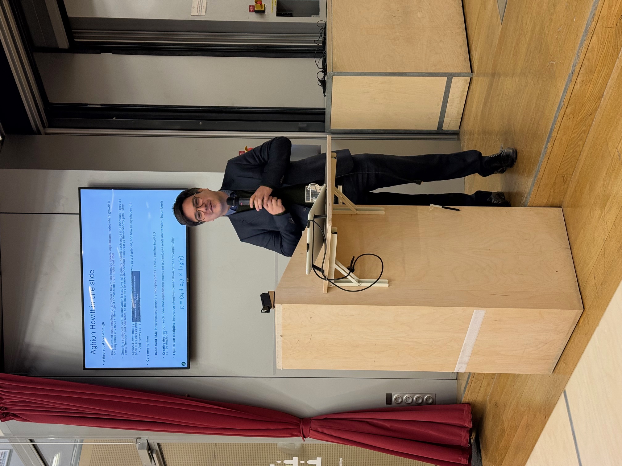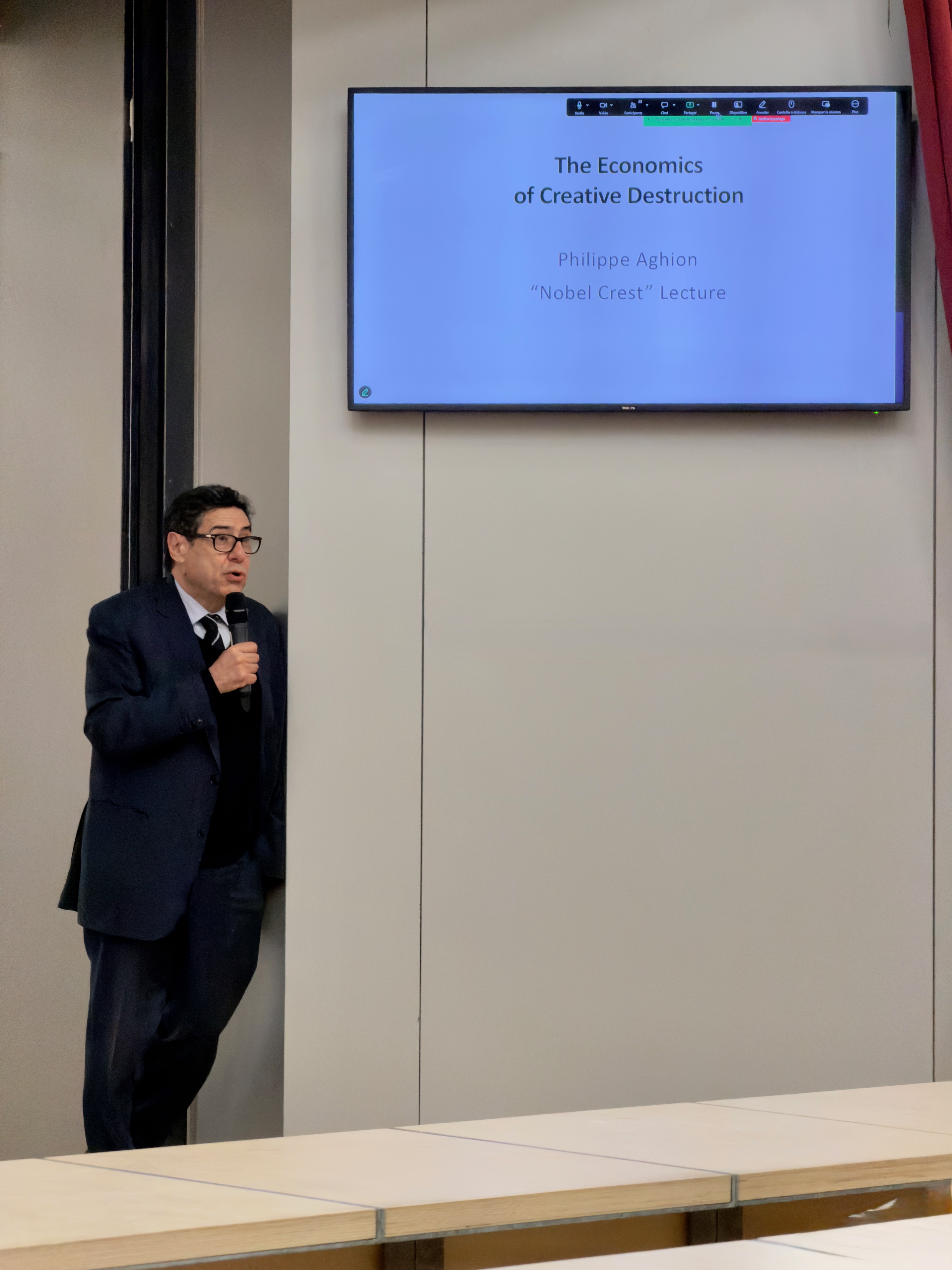 Throughout the lecture, Aghion illustrated how the concept of creative destruction helps make sense of historical and contemporary challenges, from industrial take-off to periods of slow growth, as well as the difficulties faced by middle-income countries. A recurring theme was the role of competition: not only as a driver of innovation, but also as a condition for the diffusion of new technologies and the renewal of economic activity.